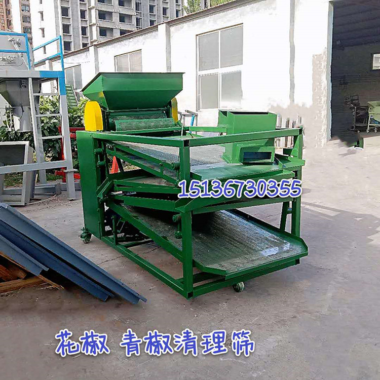 重庆用的大红袍花椒壳子杆筛选机多层青红椒除杂清理筛分离机是代替人工筛选清杂除杂的多层电带花椒筛选除杂机,本产品根据花椒大小粒度不同进行筛选,后由分机根据花椒、椒籽、椒杆等的按比重不同作再一次风选,提高花椒的回收率。风选,提高花椒的回收率。晒干的花椒经过筛分才可以达到干净,花椒在晾晒过程中里面的花椒种子都出来了,还有椒叶,椒杆,椒枝用花椒筛清理。
