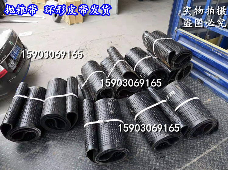 湖北武汉扬场机废料抛远分离机用的凹状无接口皮带50公分宽输送带本产品在生产过程中已将输送带制成无接头环形输送带,其特点是带芯接头处强力可达胶带本体强力的80%以上,胶带表面无明显接缺陷,因此胶带连转平稳,使用伸长小。耐磨加厚抛粮带,坑带,平带和使用“麻坑”抛粮带尼龙带、橡胶带、环形无缝麻坑带人自带生产厂家抛粮带
