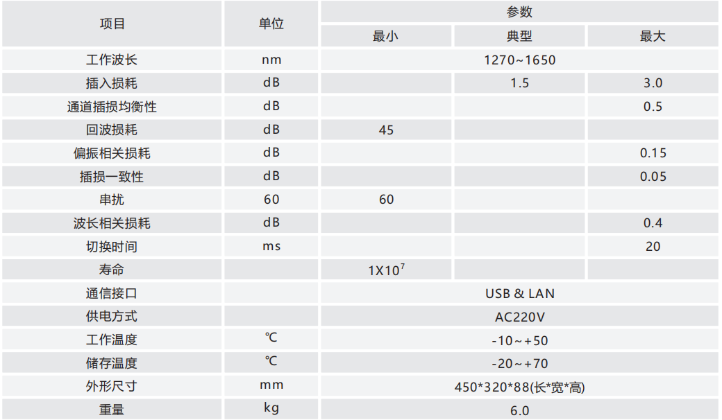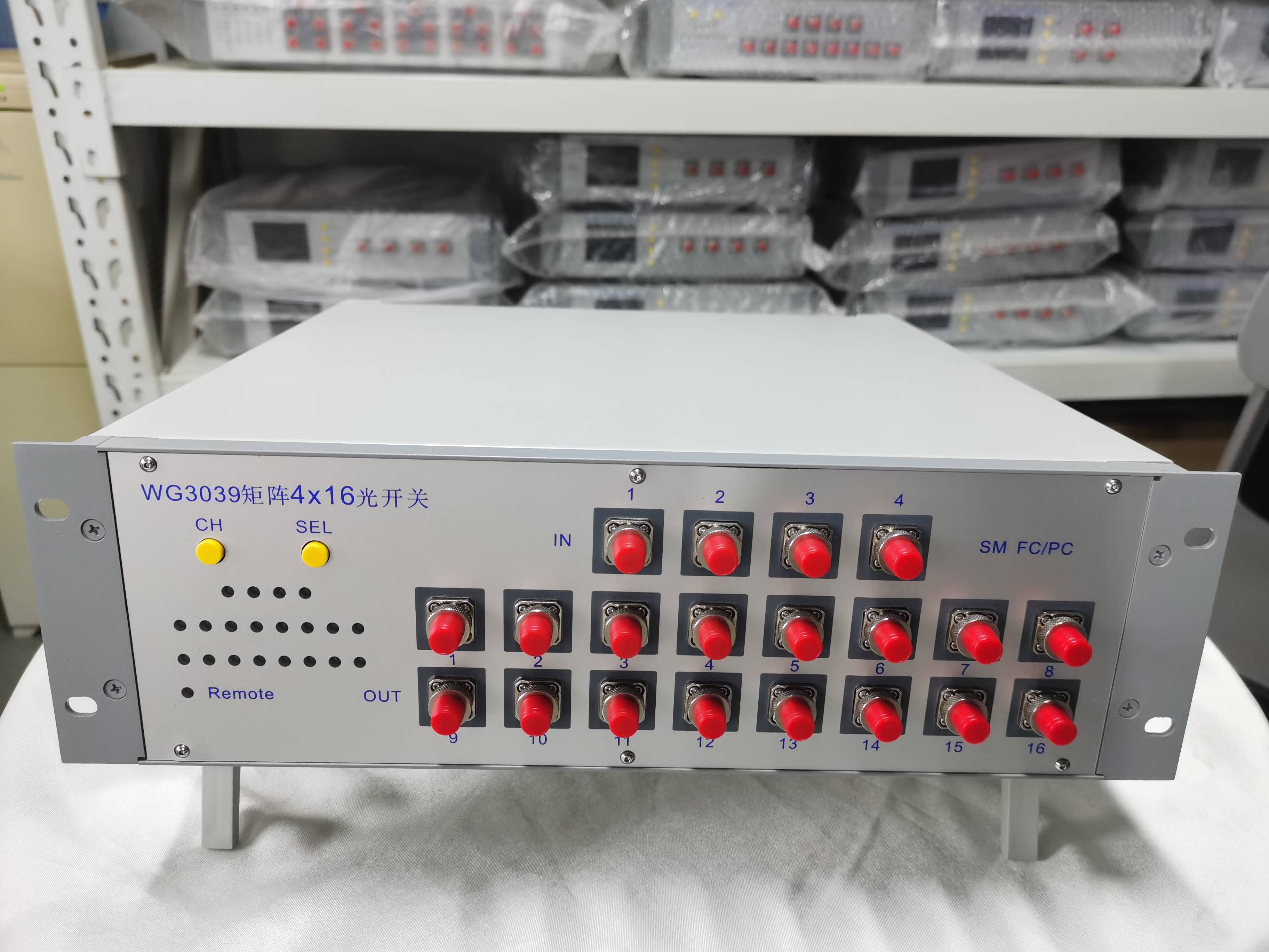 WG3039是一款上海文简电子自行研发和生产的集成4X16机械式光开关,具备全光交换的功能,即任何时刻4个输入端口可与十六个输出端口中的其中任意四个连通,具备插入损耗低、功能稳定可靠和重复性好的特点。设备配置了操作按键和LED指示灯,便于手动设置。同时具有USB和LAN通信接口,可由PC发送指令完成所有操作和控制,便于和其他测试仪器一起构成自动化测控系统。