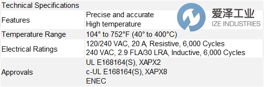 CAP系列是一款固定设定值、手动复位、高温限位安全控制器。触点为速动式单刀单掷(SPST)触点,额定电流为20?amp。CAP系列也提供额定电流为30?amp的触点。这些温控器能够切换指示灯负载,并可选配用于毫伏级应用的镀金触点。当温度升高时,球泡内的液体通过毛细管膨胀,进入远程传感器设定点内的可膨胀隔膜。许多型号为标准配置,也可根据客户需求定制设计。毛细管可选铜或不锈钢材质,长度可达13英尺。另有多种毛细管套管可供选择,以增强保护性能。该系列产品坚固耐用且结构紧凑,具有多功能性和长使用寿命。