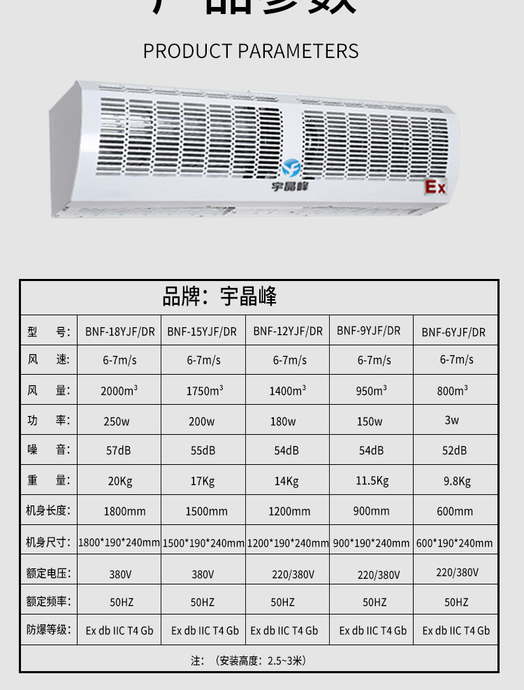 宇晶峰防爆电加热风幕机BNF-12YJF\/DR仓库车间门口大功率空气幕