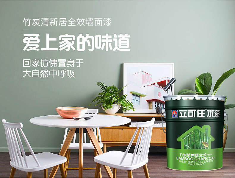 立可住白色竹炭内墙漆 家装水性哑光漆 竹碳具有疏松多孔隙结构 质地坚硬 有很强的吸附力 能净化空气 清除异味 吸湿防霉