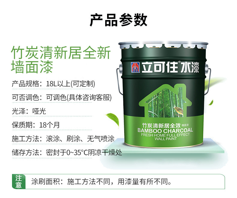 特色服务 : | 厂家负责施工技术指导 | 立可住竹炭内墙漆 : | 立可住白色竹炭内墙漆 家装水性哑光漆 |