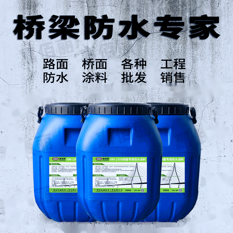 嘉佰丽HM-1500桥面防水涂料 渗透型工程建筑防水涂料 是采用优质重交沥青 添加橡胶 树脂 高聚物乳液及多种功能助剂反应而成的水性防水涂料 适应用于高速桥梁 隧道 城市立交桥等路面工程防水 欢迎订购