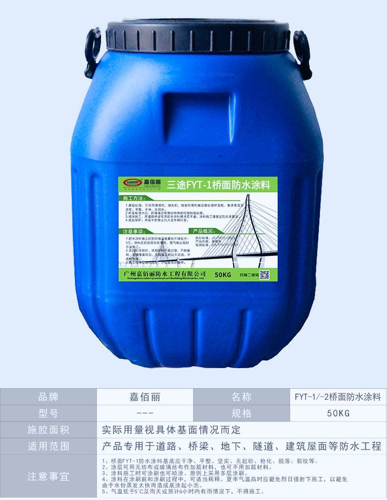 FYT桥面防水涂料 : | FYT-2桥面防水涂料 FYT工程防水 | 供货地 : | 广东 |