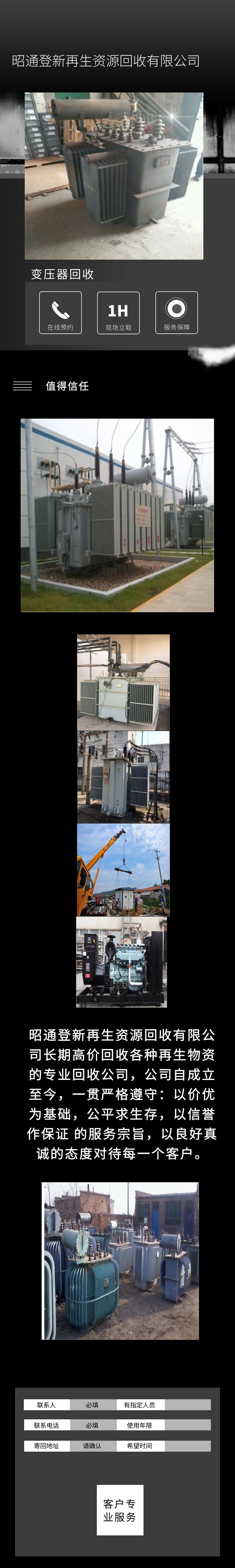 昭通登新再生资源回收有限公司长期高价回收各种再生物资的专业回收公司,公司自成立至今,一贯严格遵守:以价优为基础,公平求生存,以信誉作保证 的服务宗旨,以良好真诚的态度对待每一个客户。