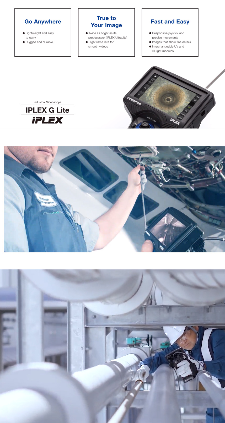 IPLEX G Lite视频内窥镜轻巧***,符合IP65标准,并通过以下美国***部军标认证(MIL-STD):