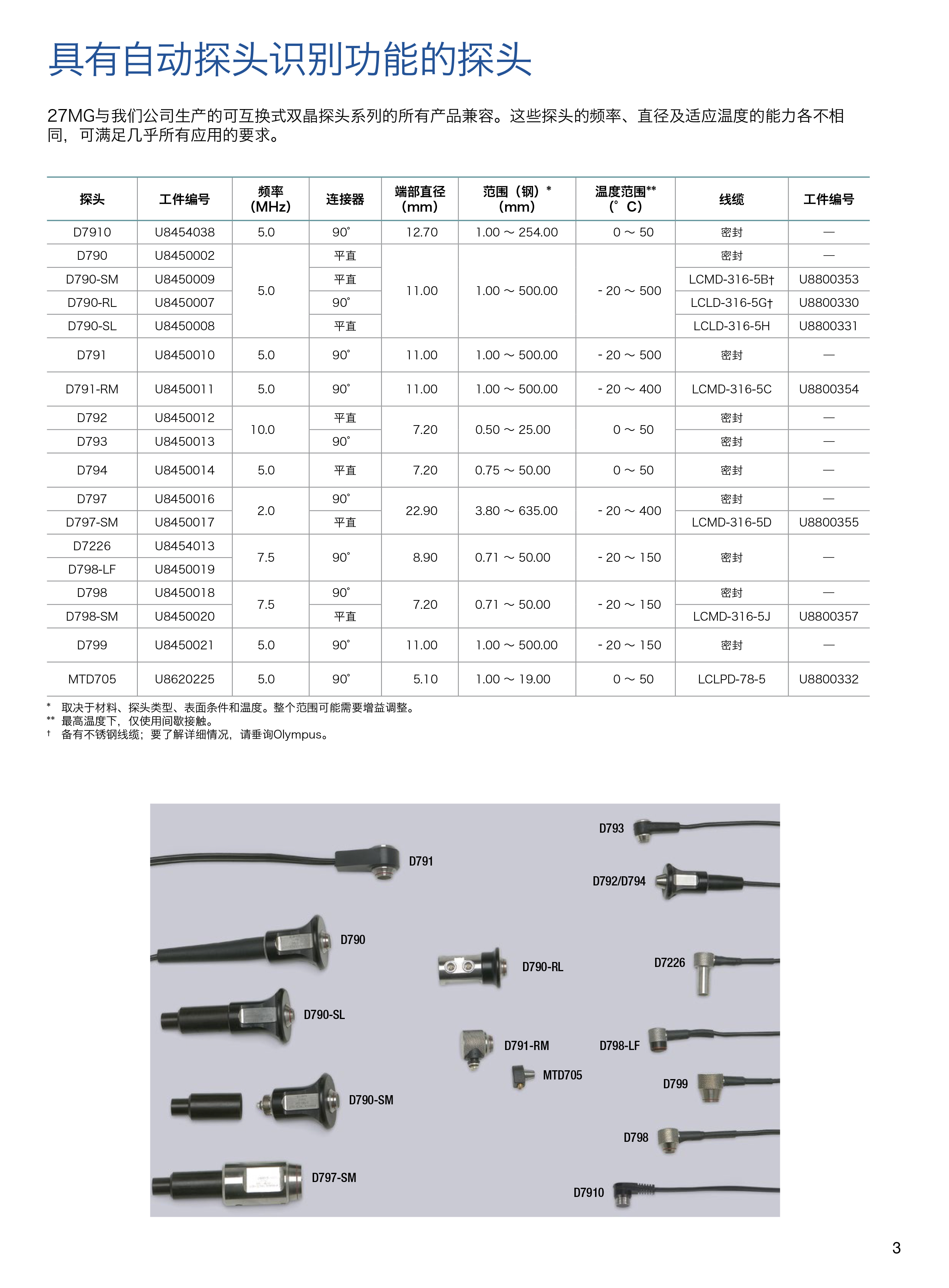 探头频率范围 2.25 MHz ~ 10 MHz (-3 dB)