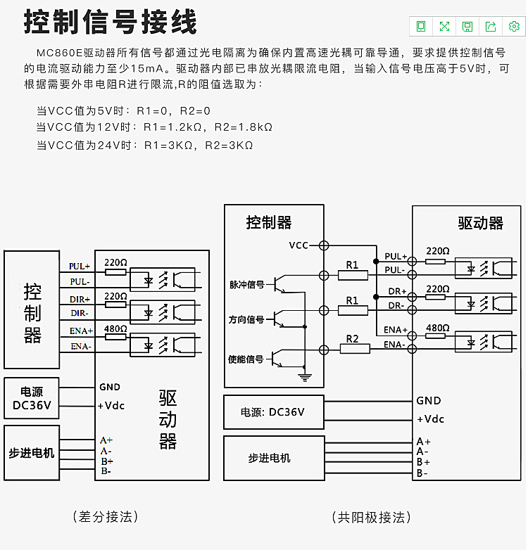 ZYM860H驱动器,主要驱动86、110型两相混合式步进电机。其工作峰值电流范围为2.4A-7.2A,输出电流共有8档,电流的分辨率约为0.6A;具有自动半流,过压、过流保护等功能。本驱动器为交直流供电,建议工作电压范围为48VAC-80VAC,电压不超过90VAC,不低于24VAC。