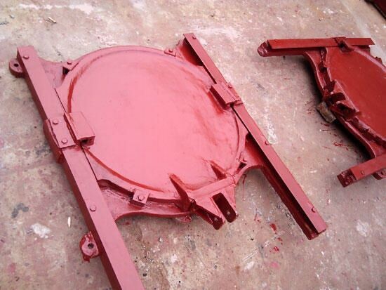 (3)闸门系列:有钢结构闸门、铸铁闸门和球墨铸铁闸门三种型号。钢结构闸门以优质板为基材、采用橡胶止水( 可为闸门表面进行喷沙、喷防腐金属涂料。产品可根据用户要求提供图纸生产)。铸铁闸门为平面铸铁闸门、球墨铸 铁闸门、球墨铸铁井盖、弧型铸铁闸门、高压铸铁闸门、拍门、潮门。可根据用户的需要采用镶铜、不锈钢等方式止 水。
