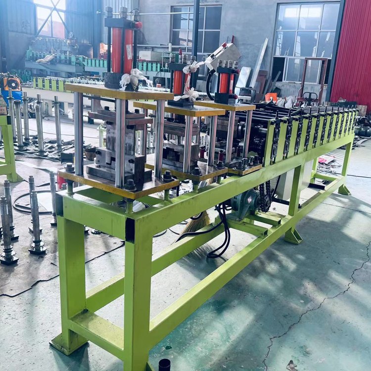 几字钢机器是一套轧辊可同时生产多种规格几字型檩条成品的单卷成型机组。由被动装料架、整平装置、冲孔装置、成型后切断装置、液压站、电脑控制系统等。