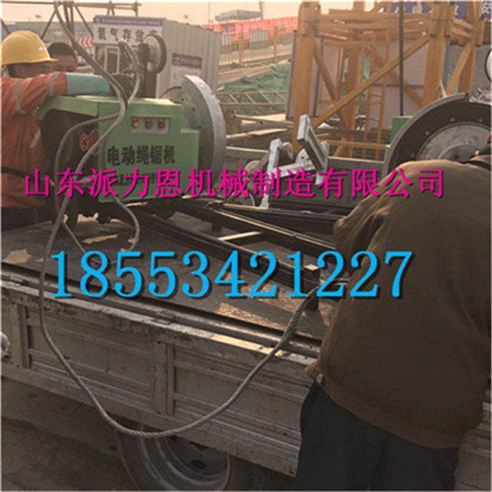 大幅度提高作业效率。液压绳锯切割机。绳锯机产品介绍:1采用先进的技术精心设计与制造,液压绳锯机可以两人同时操作多台设备。适用于各种花岗岩和大理石矿山开采。1操作台实时显示主电机电流、主飞轮速度等参数,操作调整方便。2具备自动与手动功能,设备自动运行时可完全实现无人操作,一人可操作多台设备。3机头的左右调整与旋转采用电动控制,自动化程度高。4采用进口的矢量变频器,输出转矩恒定。采用恒张力控制原理,能根据切削力大小的变化自动调节进给速度,调整过程非常平稳可靠,确保切割状态.混凝土绳锯切割机已经被广泛的运用在建筑行业和矿产行业中,绳锯机操作简单工作效率快。液压绳锯机绳锯机的主要作用就是对比较厚实的混凝土进行切割,经常用于地下室和支柱等地方的切割拆除和修缮工作。另外绳锯机的切割作业深度是不受到限制的而且绳锯机的使用范围非常的广泛,具有较强的环境适应性和作业效率。金刚石绳锯机的轴线与切削平面和进给方向垂直。本实用新型公开了一种组合式金刚石绳锯机,属于机械加工,可用于各种材料的切割,如钢筋混凝土建筑物的拆除、海底单双层油气管道或海底导管架的切割等。本实用新型包括固定基座,设在固定基座上的驱动装置、顶紧机构;所述驱动装置包括至少2个同型号的电机,被电机传动轴围绕啮合带动的主动轮。