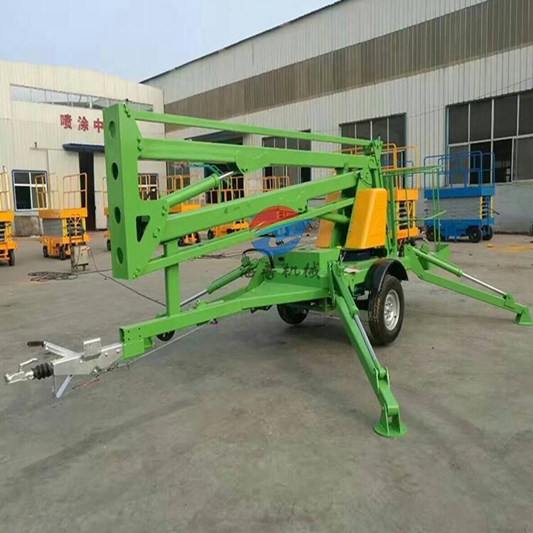 拖车折臂式升降机:可以挂在汽车上,与汽车同步,适合野外高空作业。升降方式:1、用380-220V电源2、用电源不方便,可以用电瓶驱动升降。外型美观,行走方便。