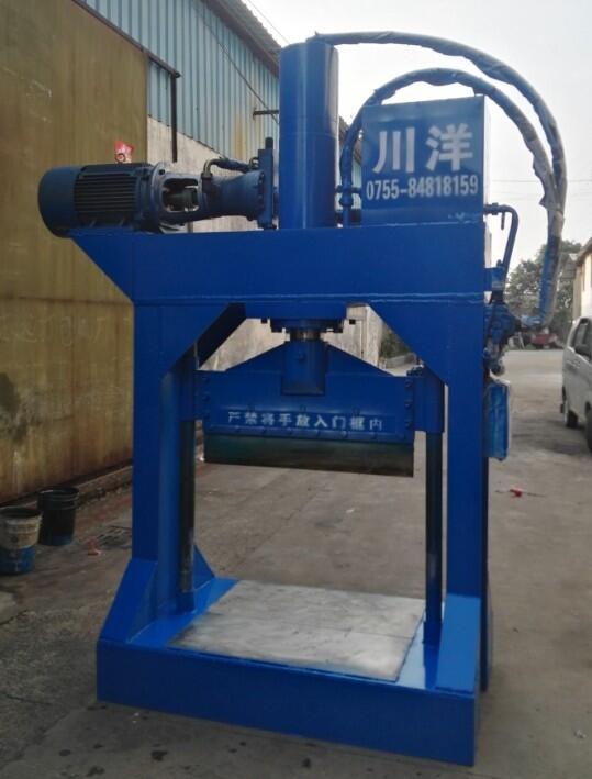 立式液压切胶机适用于大型软胶塑料产品、PE、PP薄膜、塑胶板、纸板、各种塑胶筐、塑胶拖板等非金属材料的切断,从而方便物品的二次加工利用。本系列产品全钢板焊接,构造坚固,设计合理,占地面积小,油箱、控制器和机身合为一体,操作简单,维护和保养方便。该产品切断彻底,具有速度快,效率高的特点。工作压力有40T、60T、80T、100T等多种规格,另可根据用户要求设计订做。