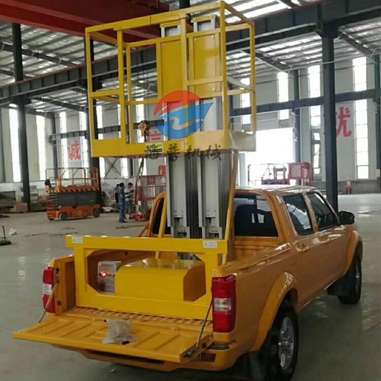车载式升降机根据举升机构的可分为车载剪叉式升降机、车载铝合金升降机、车载曲臂式升降机。产品是集四轮移动与二轮牵引式于一身,采用汽车底盘做平台底架,利用汽车发动做动力,既可行驶又可驱动升降机。产品以小型货车(汽车)或电瓶车为载体,移动灵活迅速,操作简单,作业范围广。车载剪叉式升降机采用剪式升降结构,剪叉结构采用优质矩形锰钢管制作,整体强度高,载重量大,升降稳定性好,广泛用于城建、油田、交通、市政、室外广告等行业。