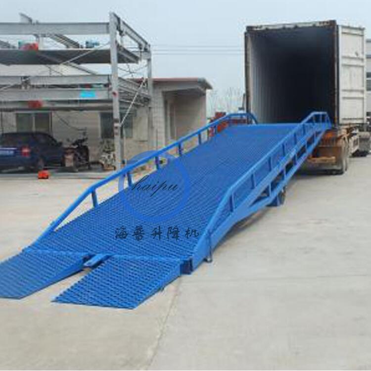 海普机械是知名液压升降设备生产型企业,公司常年备有6~15T各吨位的登车桥现货,可以随时发货。亦可以根据用户要求合理设计尺寸,工期短,质量高,服务好。完美的产品,全面的服务。选择海普,选择优质产品。