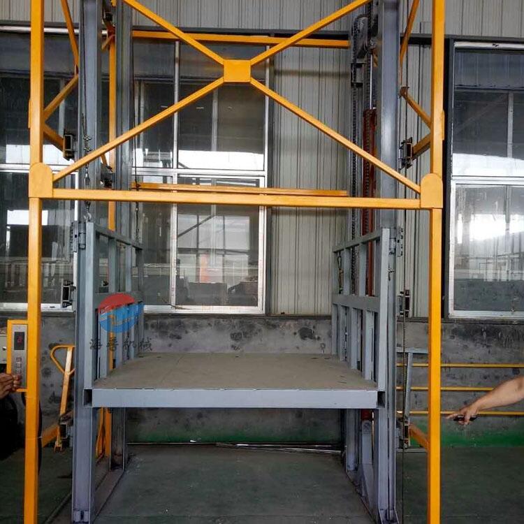 1.主要用于楼层间高空货物运输。主要用在载重量轻,台面尺寸要求比较小的环境.载重1-3吨,升高高度1-25米.室内、室外均可安装导轨式升降平台也叫做液压提升机,提升高度高,采用旁置油缸,运行平稳、噪音低、维修方便、使用寿命较长;