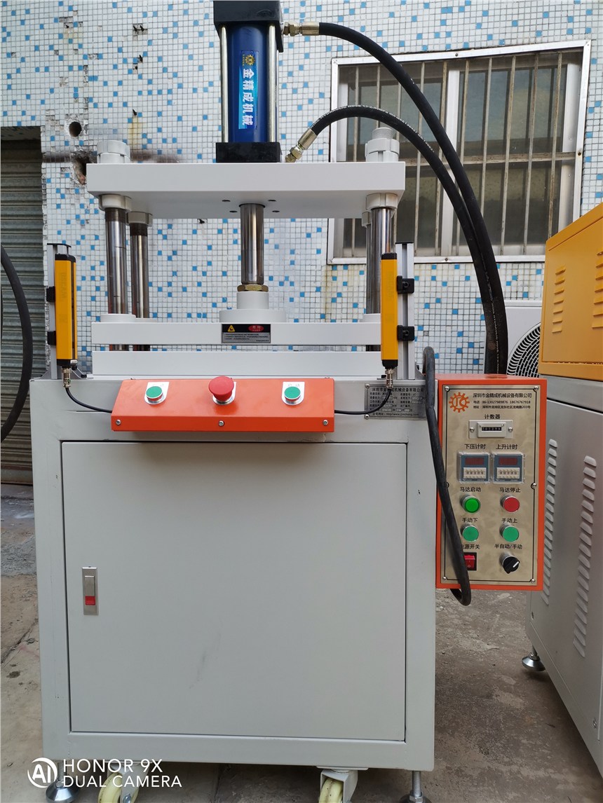 5.分手动和半自动两种控制方式,手动可将压装上模停在任意行程范围内,配有紧急回升按钮,加装有红外线护手装置.