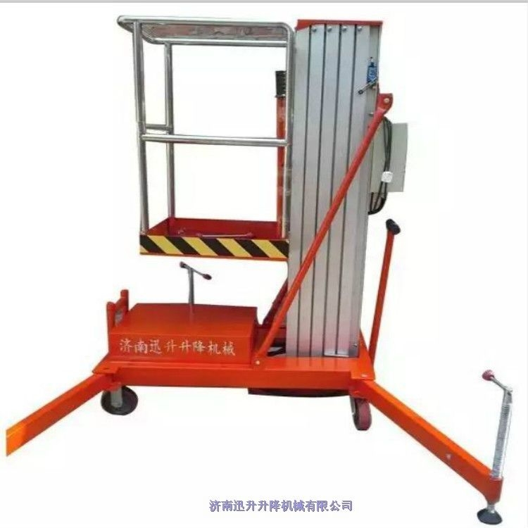 济南迅升单柱铝合金升降机:该系列产品为室内型,广泛适用于 酒店,大型超市等各行业大厅、厂房内的高空作业,具有升降平衡,操作方便,能进入一般门厅,可随意进出电梯且耗电少、无污染、工作时不伤地面可用于贴墙工作及探出作业,工作无死角