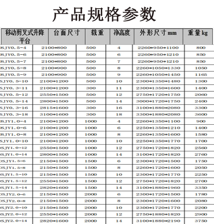 移动剪叉升降机主要是四轮移动行走,一般由底座、剪叉结构和工作台三部分组成。底座采用相应强度钢板焊接而成;剪叉结构采用山钢集团,上海宝钢集团的高强度锰钢矩管制作,强度高、外形美观;工作台,结构坚固,台面宽大,承载能力高,升降平稳,维护保养简单方便,可多人同时工作,使高空作业更安全、效率更高。并设有安全护栏,操作安全可靠。可根据客户要求进行尺寸的定做,台面延伸等。
