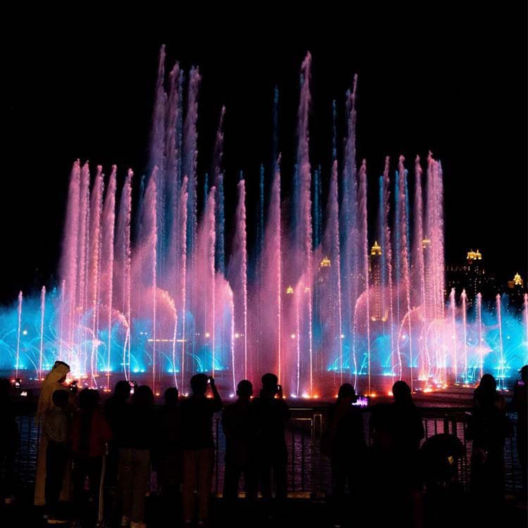 二是完全依靠喷泉设备人工造景。这类水景在建筑领域广泛应用,发展速度很快,种类繁多,有音乐喷泉、程控喷泉、摆动喷泉、跑动喷泉、光亮喷泉、游乐趣味喷泉如呐喊喷泉、超高喷泉、激光水幕电影等。"