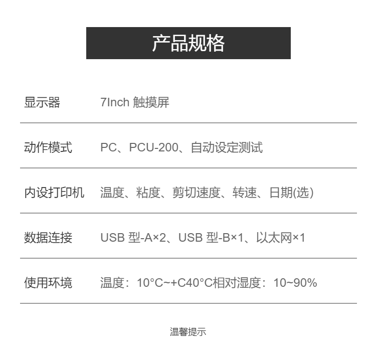 内置打印机 | 温度、粘度、滴落速度、转速、日期 | ||