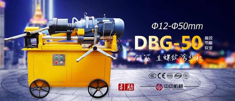 中动DBG-50型钢筋剥肋滚丝机 套丝机主要用于建筑工程带肋钢筋滚轧直螺纹丝头加工,是实现钢筋连接的关键设备,可加工φ12—φ50mm的HRB335、HRB400、HRB500及HRB600级带肋钢筋。