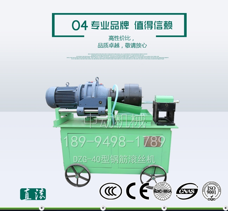 中动DZG-40型钢筋滚轧直螺纹机床主要用于建筑工程带肋钢筋滚轧直螺纹丝头加工,是实现钢筋连接的关键设备,可加工φ16—φ40mm的HRB335、HRB400、HRB500及HRB600级带肋钢筋。