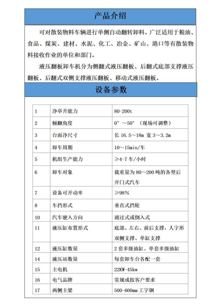 QF-XTQ80t侧翻液压翻板机粮库粮食卸车全自动卸车机