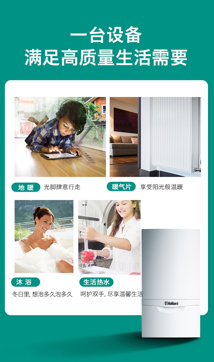 产品性能稳定,故障率低,经过了市场的长期检验。其冷凝产品所具备的三大核心技术,保证了壁挂炉在低负荷条件下也不会超额使用燃气,此外,它还配备中文界面操作产品,简单明了,并可通过威能eBUS协议与其他控制器联合使用,使用起来更加便捷