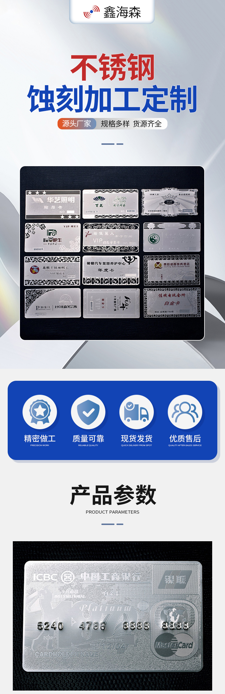 不锈钢金属铭牌高端会员卡金属卡片蚀刻定制加工厂家