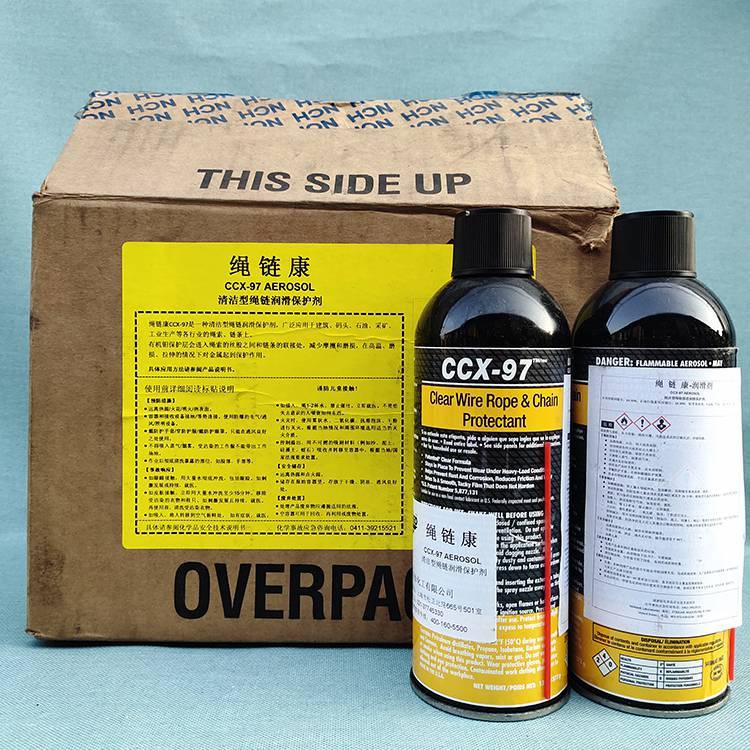 绳链康CCX-97绳链渗透润滑保护剂。清洁、环保型配方。内含有可溶性有机钼SOLUMOL 添加剂,有机钼保护层会进入绳索的丝股之间和链条的链轴和轴套联接处,减少摩擦和磨损,在高温、磨损、拉伸的情况下对金属起到保护作用,延长绳、链寿命。连续使用温度范围-20℃-100℃。