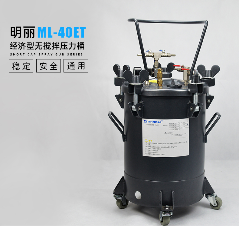 明丽经济型无搅拌压力桶 10L/20L/40L油漆胶水脱模剂喷涂压力罐 型号 | ML-10ET/20ET/40ET压力桶 | ||