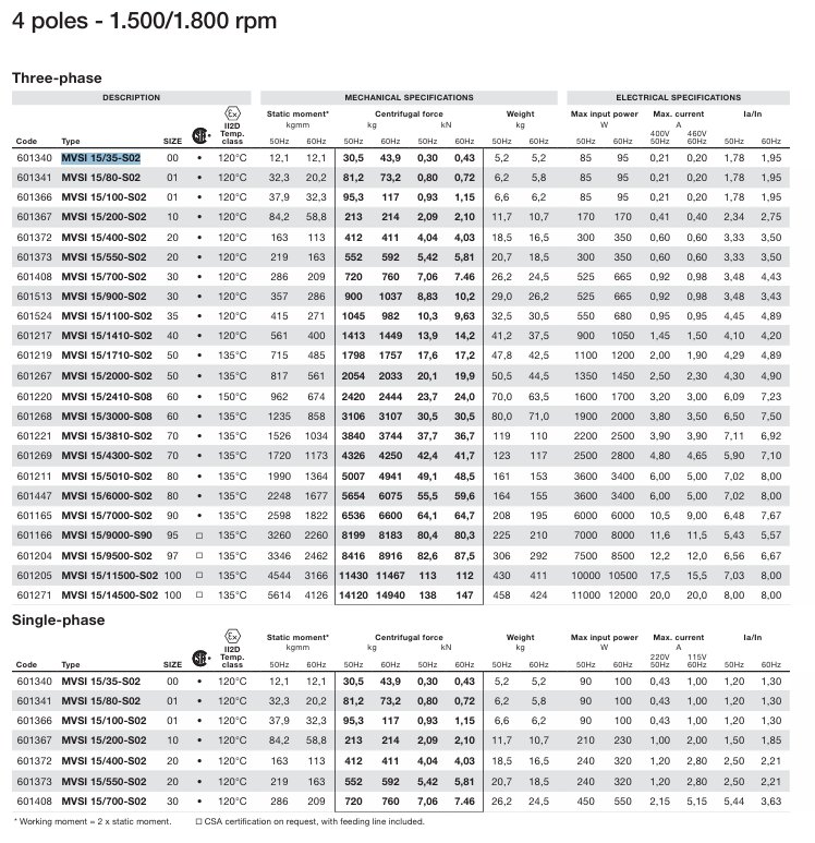 此款振动电机,应激力55.5KN(50Hz)/59.6KN(60Hz),重量164KG(50Hz)/155KG(60Hz),输入功率3600W(50Hz)/3400W(60Hz),其它技术参数详见附图。