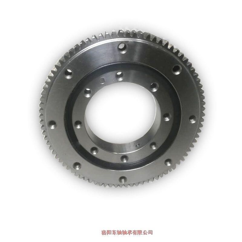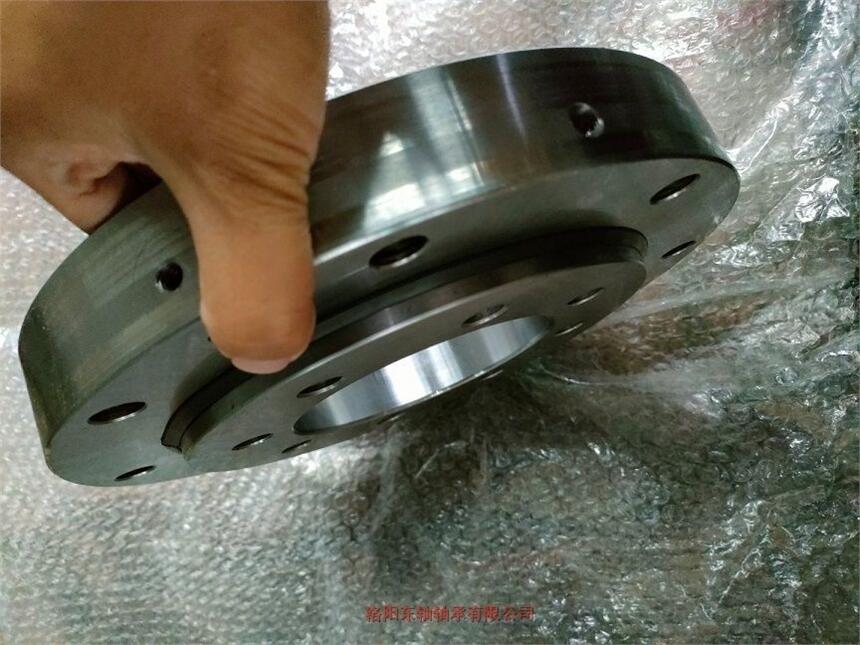 与普通的交叉滚子轴承结构上稍有不同,基本结构形式类似,采用外圈分体型,内圈一体结构,与标准交叉滚子轴承相比,内外套圈上加工有很多安装螺纹孔,尤其是内圈,从外到内一般有三层不同尺寸和数量的安装螺纹孔,这是外观上与基本型交叉滚子轴承的区别。材质采用高端GCr15轴承钢,外圈热处理采用整体热处理,而内圈采用表面热处理,这是与普通交叉滚子轴承工艺相比的区别之处;该角接触轴承运转摩擦力矩的平稳性和精度对轴承啮合力及运转的稳定性具有重大影响,更直接影响了轴承主机的使用寿命,因此,交叉滚子轴承的质量好坏直接决定了轴承的性能和寿命。