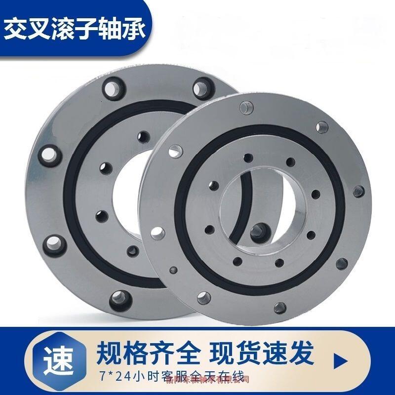 LYDZC交叉滚子转盘轴承具有以下特点:结构紧凑,重量轻,制造精度高,装配间隙小,对安装精度要求高,滚子为1:1交叉排列,能同时承受轴向力倾覆力矩和较大的径向力。
