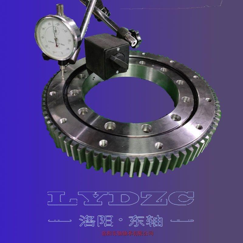 回转支承的滚动表面如有裂纹、压痕或锈蚀,就会发生像铆接铆钉那样周期性的振动和噪声,其周期可能固定不变但大多与转速成定的对应关系,伤痕在沟道上会连续发生,伤痕在钢球上就时隐时现,而且这种噪声随安装和润滑条件而有定的变化。润滑剂选用错误、润滑剂不足或发生老化硬结,都能导致回转支承/转盘轴承产生振动和噪声,而且这种噪声没有定的规律。对于这种情况,只有选用合适的润滑剂,调整其润滑剂量,延长润滑剂的使用寿命并合理确定更换周期。