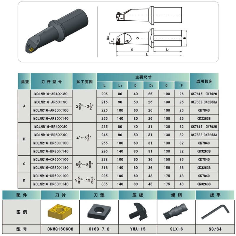 石油管螺纹疏刀刀具镗孔刀杆MCLNR16-AR50×90