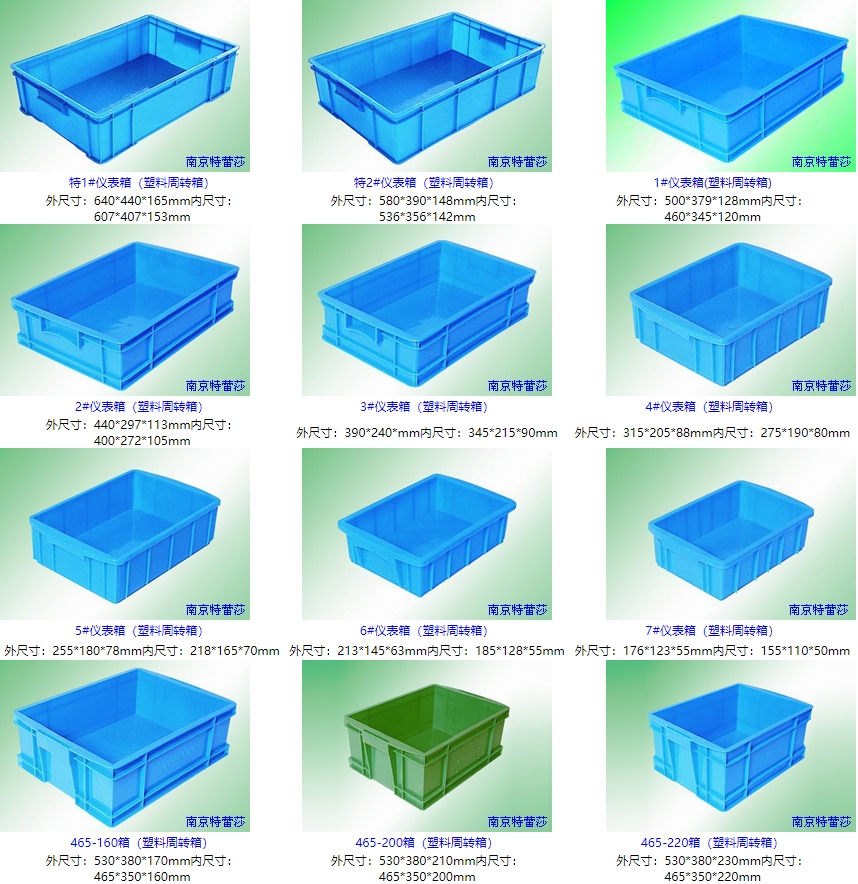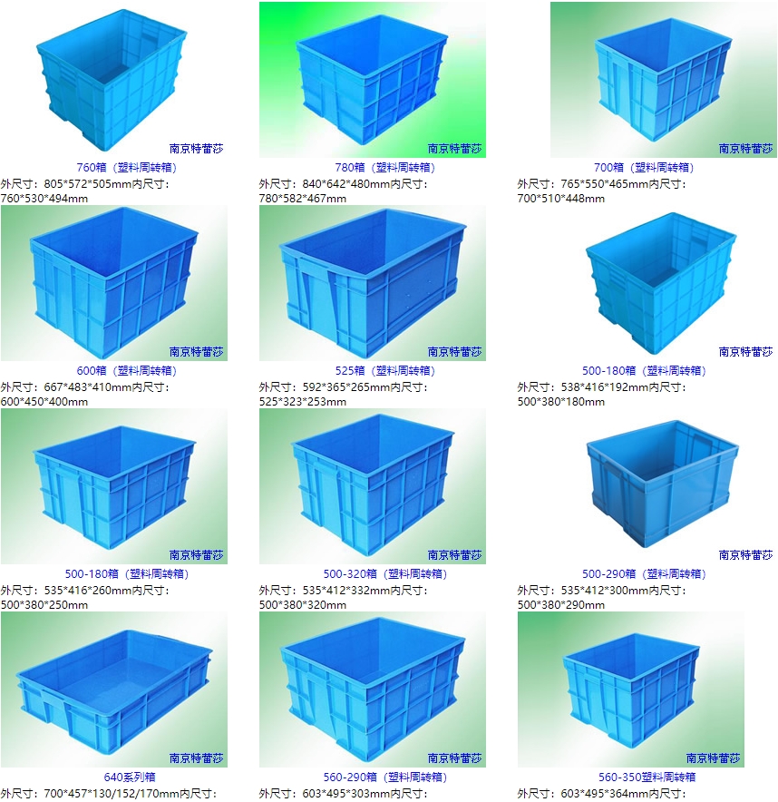 塑料周转箱是由全新聚乙烯一次注塑而成。根据常规的需要针对采用的塑料周转箱配置的塑料盖子。 塑料周转箱是物流容器,塑料周转箱应用于食品、超市等行业,能、,,且具有便捷、堆放整齐、便于管理等特点。其合理的设计、优良的品质,适用于超市物流 中的配送、储存、流通加工等各个环节。在物流管理越来越被广大企业重视的今天,塑料周转箱可以帮你完成物流容器的通用化、一体化管理,是你进行现代化物流管理产品之一。 塑料周转箱常规颜色为蓝色。 可以根据客户的要求定做为:红色、绿色、灰色。 也可以根据需要将制定的塑料周转箱定做为防静电产品。广汉物流周转箱_福州塑料周转箱经销-南京特蕾莎