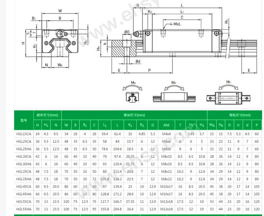 HGL45CA滑块尺寸规格上银HIWIN线性导轨滑块现货供应