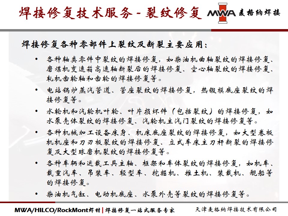 麦格纳焊接-您身边的焊接修复一站式服务专家:可提供全系列优质的高性价比维护与维修用焊接材料、专业的焊接修复服务、培训,为客户解决各种焊接疑难问题。