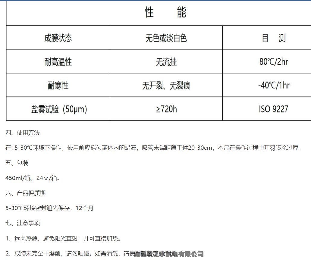 3、 低气味,环保型溶剂防锈体系,属亍环境友好型产品。