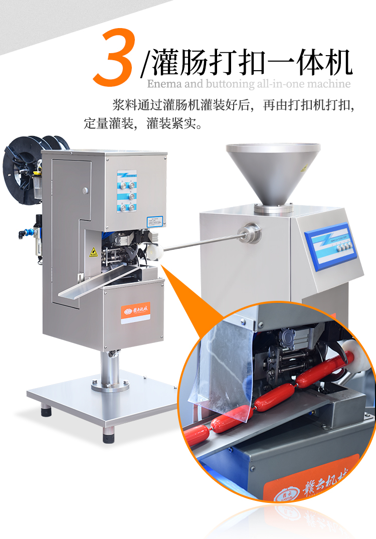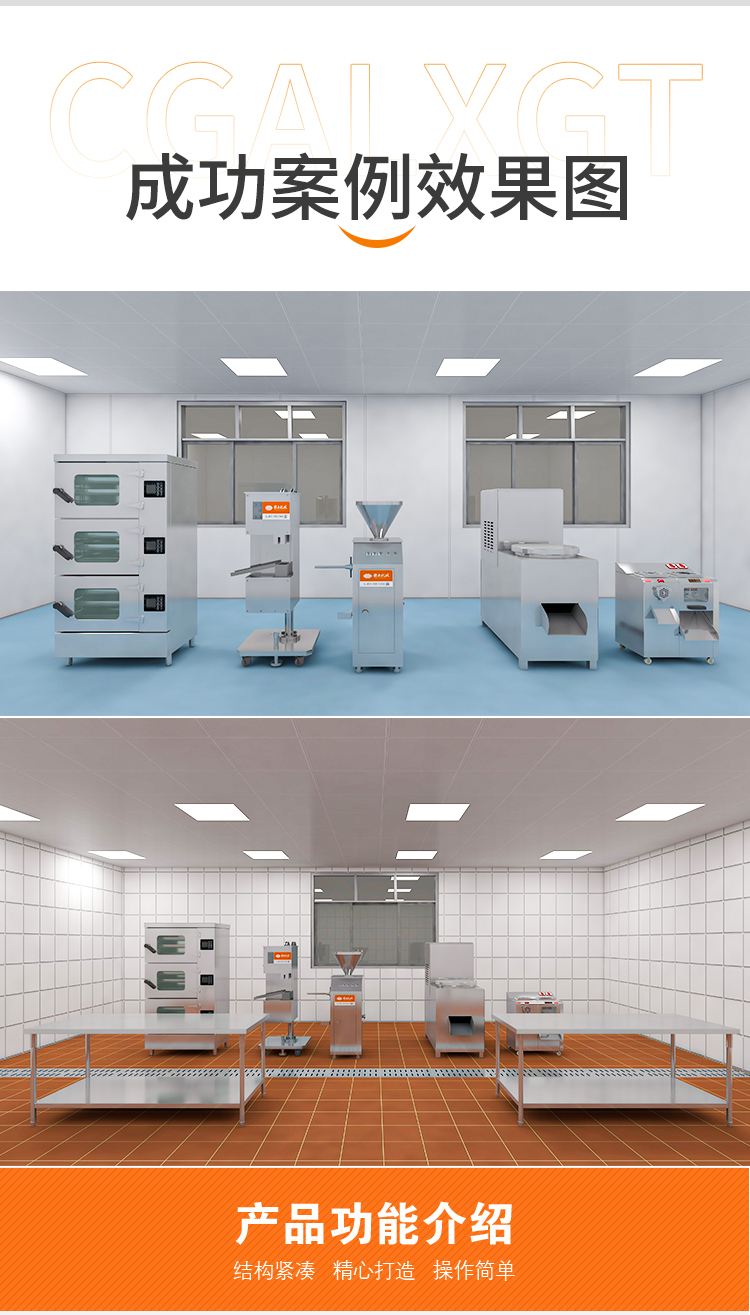 用途范围 | 火腿肠原料的绞肉、打浆,火腿肠的灌肠打扣、蒸熟。 | ||