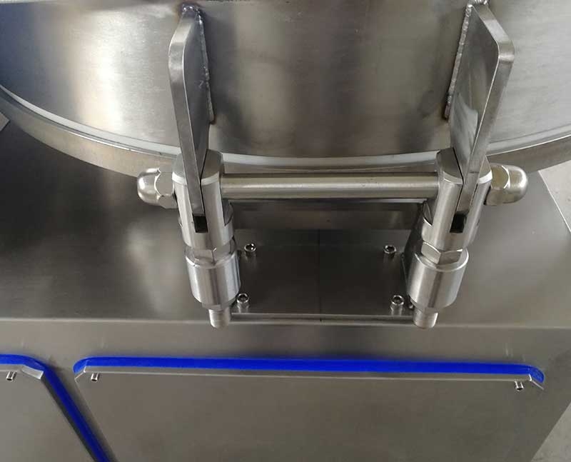 斩拌机利用斩刀高速旋转的斩切作用,将肉块,碎肉,脂肪等主要原料精细的斩切成肉馅或肉泥,同时将其它原料如水,冰片,辅料一起搅拌成均匀的乳状物。斩刀高速旋转,可以缩短运行时间,减少物料发热量,保持馅料的天然色泽、弹性、出品率和产品的保质期。