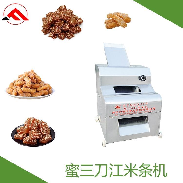 更换刀具可以生产不同食品。刀具设计合理,生产蜜角(梅豆角、羊角蜜),大、小蜜三刀,江米条(小金果); 花一个机器的钱买多个机器!性价比更高!