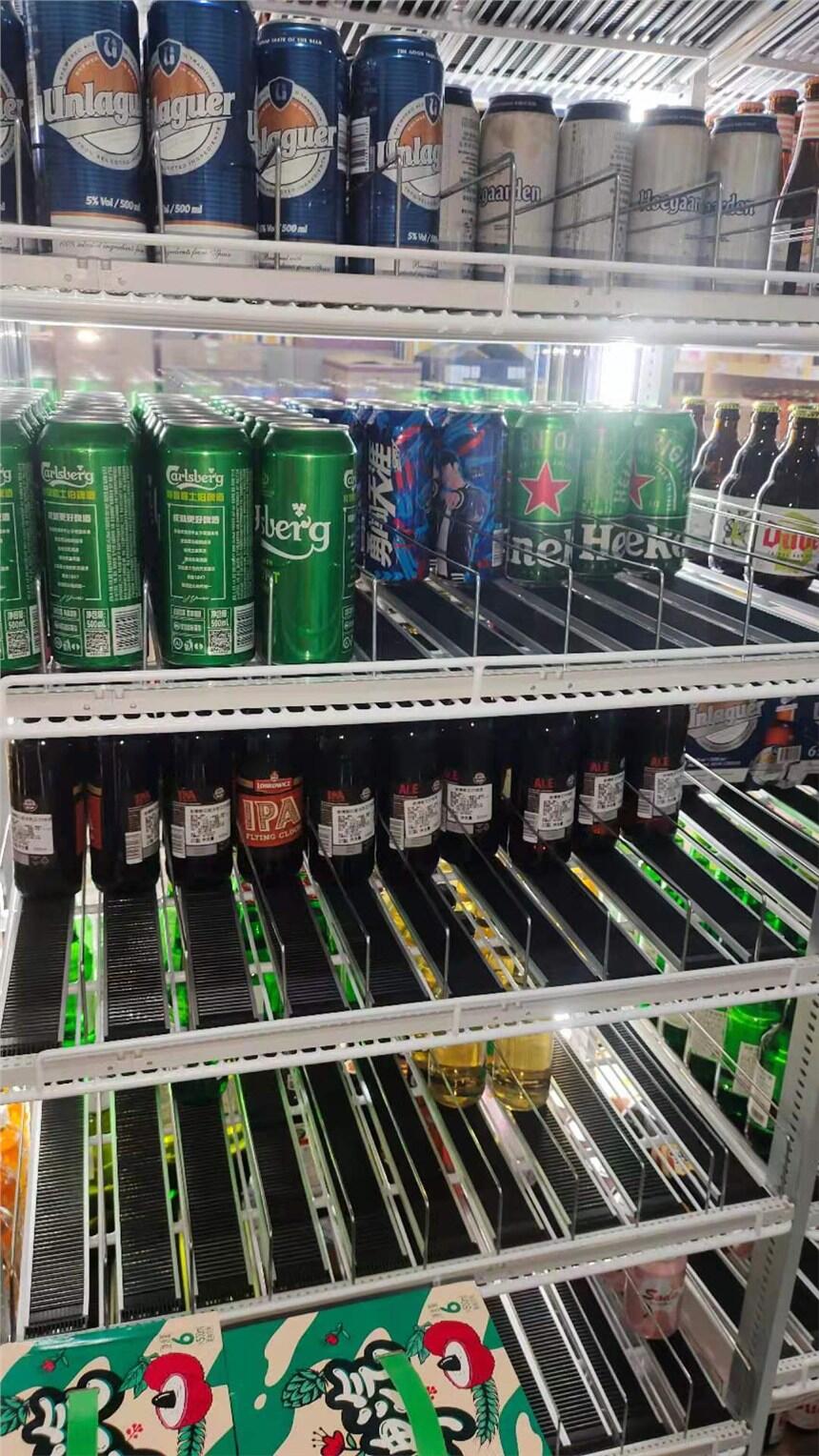 新型新增加了一块补货货架和新开设了一扇补货门,商场理货员在理货时,可以不影响和干扰顾客的选购,同时补充的货物由于事先是放置于处于同一温度下的补货货架上,因此,可以保证商品温度的*性。