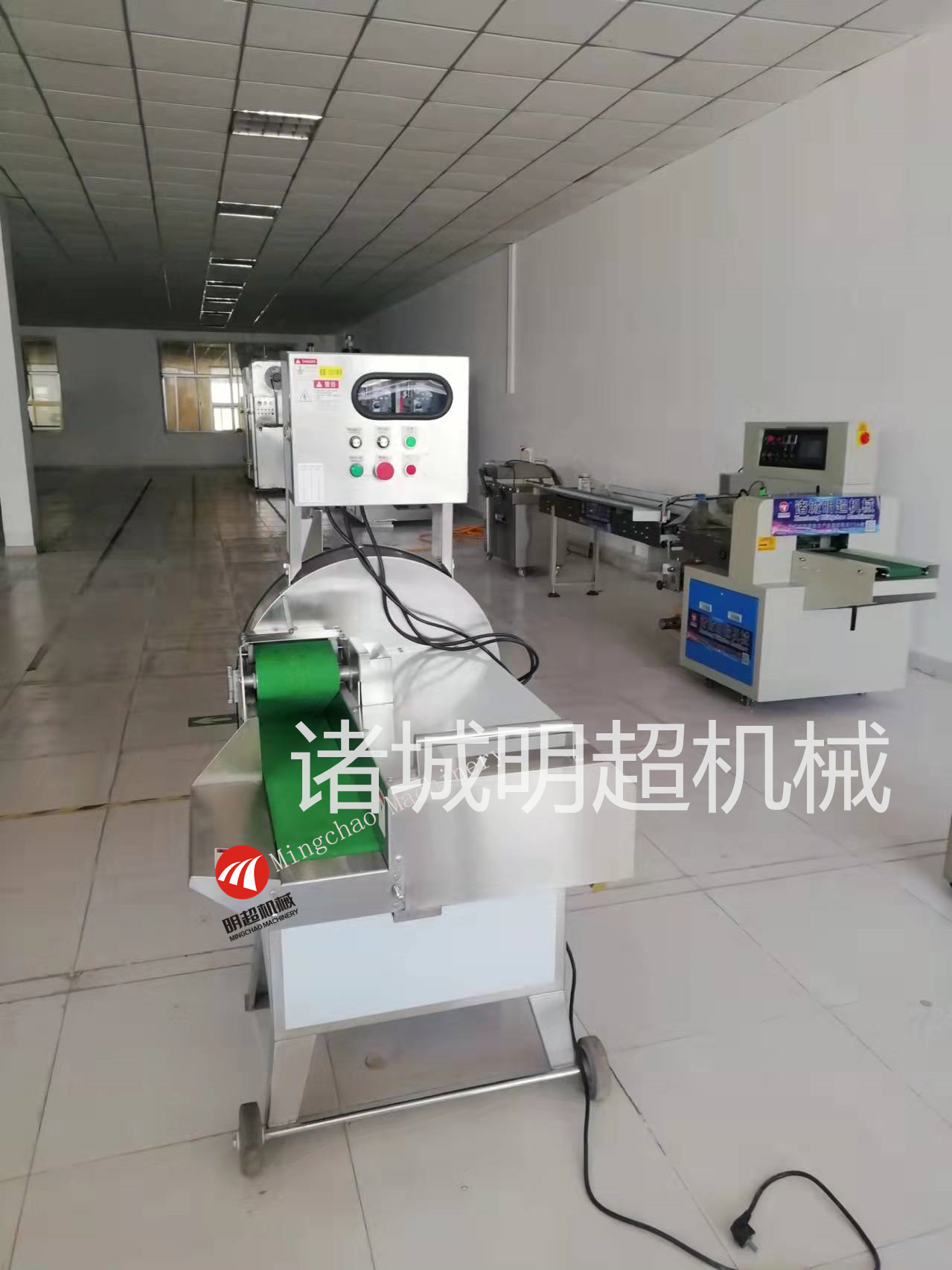 叶菜类-可切长条状葱、大蒜、韮黄、芹菜、高丽菜、大白菜等切段,输送带与切刀的转速采用变频器控制可以调切所切割的蔬菜长短。同时机器自带三种刀具,可以切丁、块丝状物料,产量大,节省时间,304不锈钢材质。