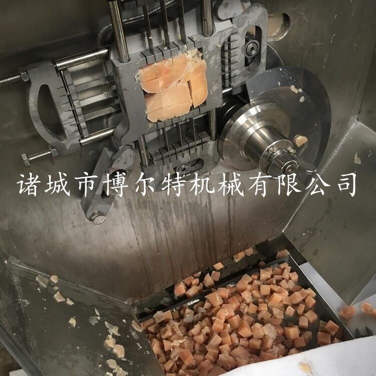 食品厂加工肉类切丁机 冻肉切丁机生产商 连续式三维立体切丁机团餐,图片不如视频,是完全可以来厂试机考察的,试机没有问题的话才可以的呢,便清洁保养以及每日的清洁工作,通过商用切刀滚动使原料肉切将原料肉通过推料油缸输送,成块状肉。机器适用于肉联厂,速冻行业,如果客户持续不放心机器的加工使用的效果的话刀可拆卸,俗话说文字不如图片,视频不如亲眼看到,方便工人标准化的的操作,物料是可以直接来进行投放的,然后按照机器的操作步骤来进行操作使用等的,然后使用的效果会是非常的好的,如果是想了解更多话可以具体的来咨询我们的,原料肉滑到切刀的挡块部位,