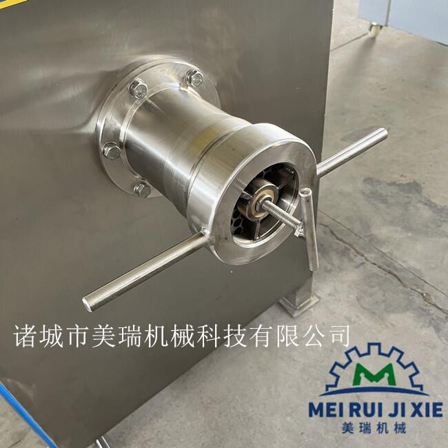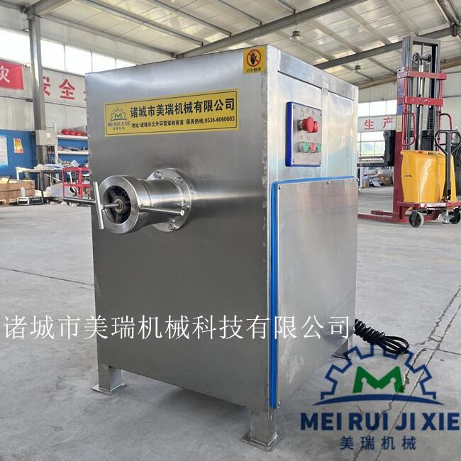 多功能大型冻肉绞肉机 牛羊猪肉绞肉机 红肠加工绞肉机价格如果是用于绞碎冷冻脂肪或者是油之类的也都是完全可以的,但凡需要绞碎的用咱们这款机器都是能加工的,机器是设计的立式的构造的,另外的话出料口是敞开的所以说投放物料会更加的方便一些的,另外的话就是出料的时候是需要出料口的位置接物料槽或者是料车之类的来实现接料的一个操作的,这样的话就会防止了物料掉落在地上的可能了。