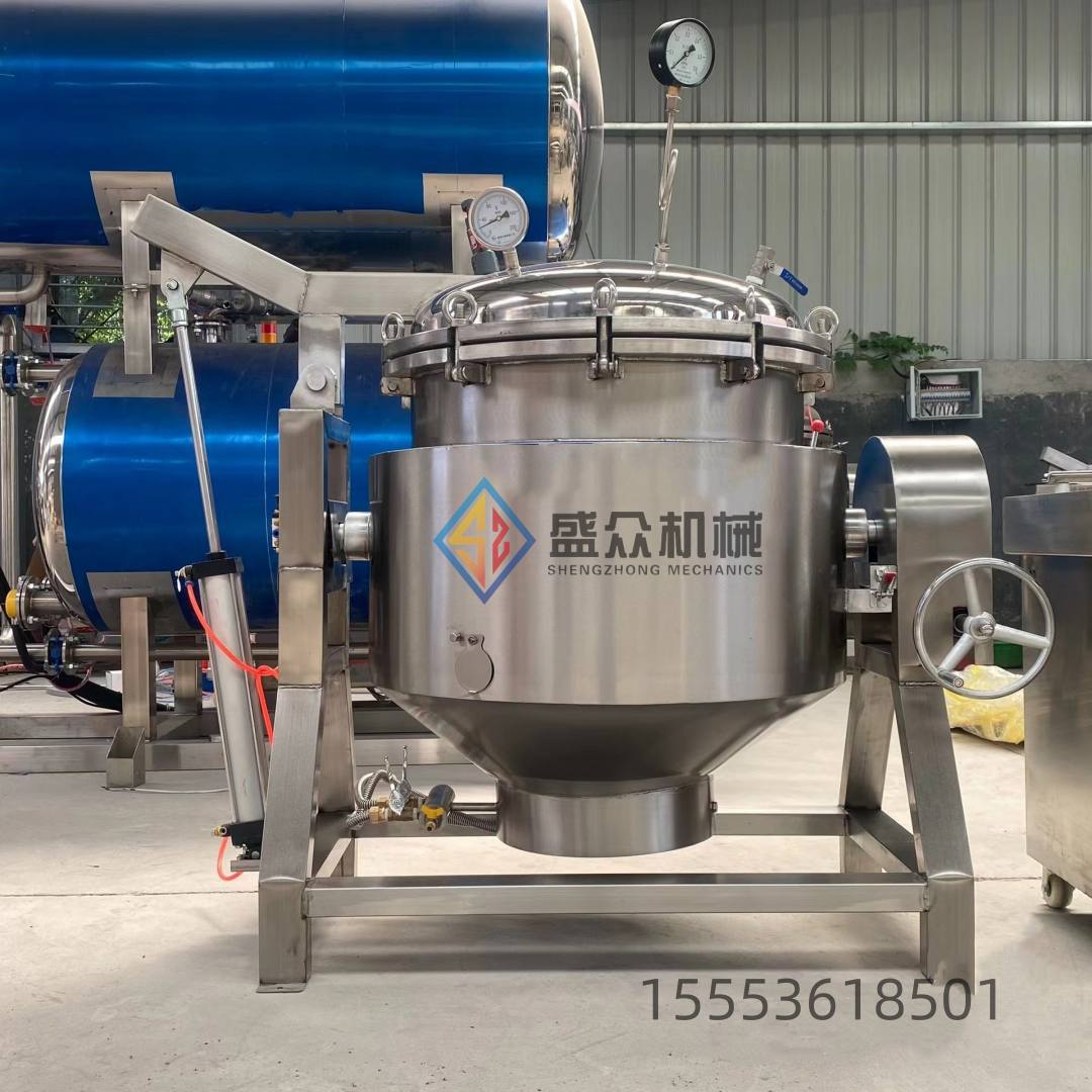 高压蒸煮锅顾名思义就是有压力的锅,高温高压蒸煮锅的结构并不复杂整体上由锅体和支脚组成。锅体是带保温层的夹层的锅,有内外两个锅胆组成。上面部分是一个特制锅盖,与锅沿保持高度契合,保证锅内达到全封闭式无泄漏的环境,加热产生蒸汽从而达到锅内高的气压,最后使锅内的温度突破100度。相比普通锅它在高压下,温度高,蒸煮产品时间短,煮肉和粽子等食品容易烂,节省能源,蒸煮的产品数量可达2000斤,可以在门头使用,也可用于食品加工厂等。(食品加工机械厂家Tel:155*5361-8501)